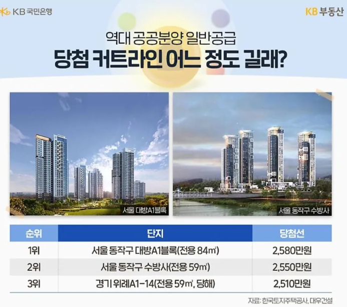 - 😮 최근 공공분양 당첨 현황을 살펴보면 2500만원 이상의 예치금 보유, 당첨 커트라인은 60점 이상이기 때문에 무주택 기간과 부양 가족 수를 통한 가점 확보가 중요합니다!!