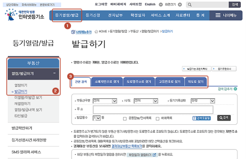 - 법원 등기소를 직접 방문하면 무료 열람 가능. 단, 출력물 제공은 비용 발생.