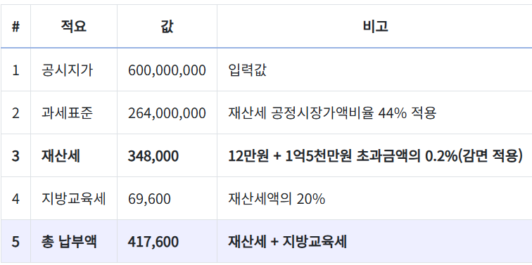 3) 최종 납부액=재산세+지역자원시설세+지방교육세