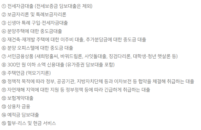 - 다음 대출들은 DSR 적용 대상에서 제외되니까 참고하세요.